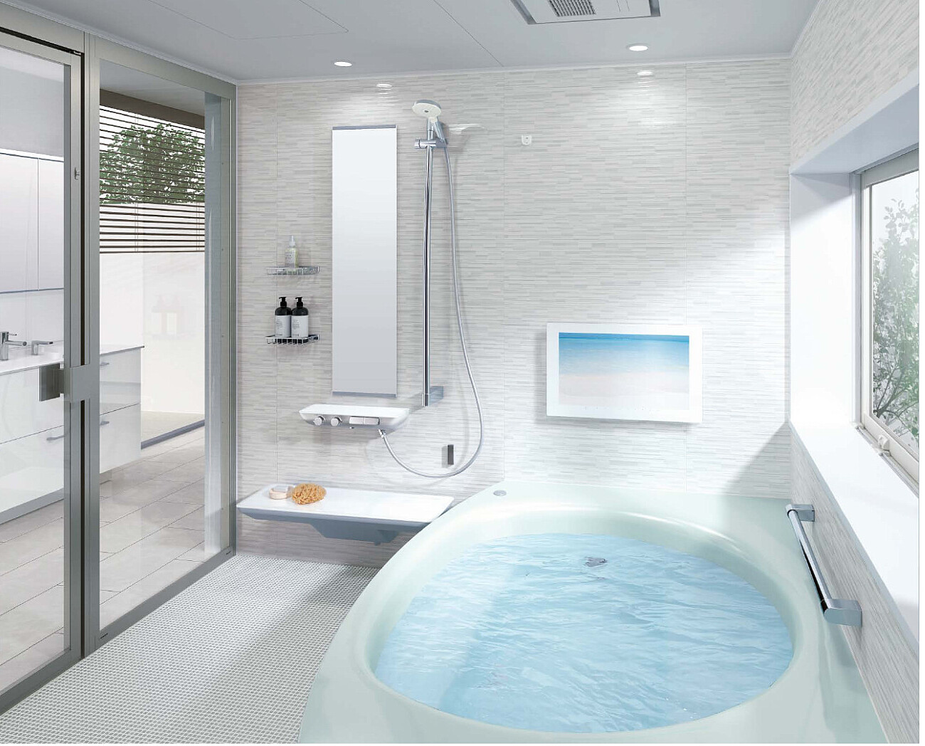 床ワイパーにやおそうじ浴槽によりおそうじのサポート。またきれい除菌水仕様の場合は除菌をしてくれるのでさらにきれい。約2週間に1回の手洗いで済みます。