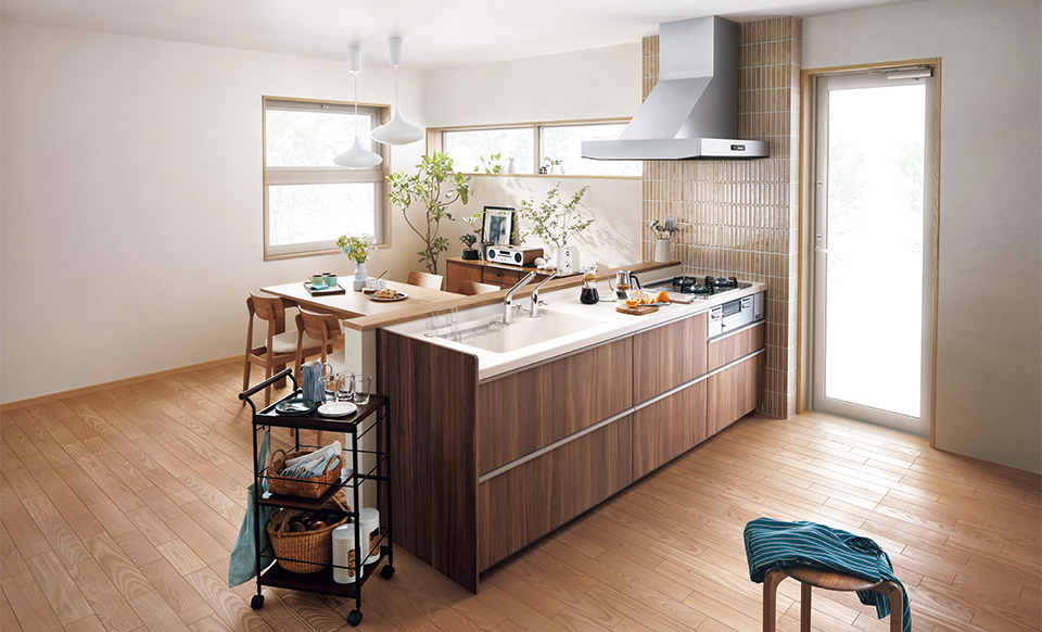 大きなシンクで広々使え、浄水器用水栓が調理スペースにも使えるのでお鍋などに水を溜めシンクから持ち上げることがありません。